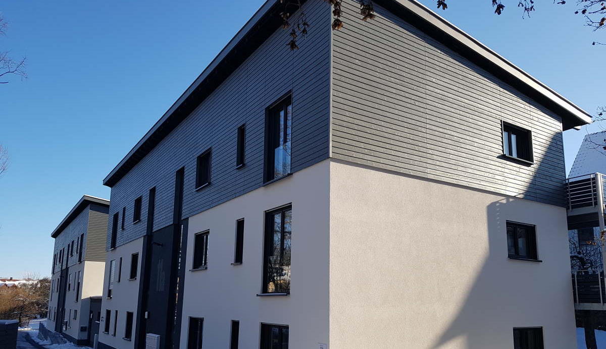 Anfang 2020 war dann das sozialgerechte und Mitte des Jahres 2020 das frei vermietet Wohnhaus fertiggestellt. Nachdem bis Mitte 2020 auch die Zufahrt zu den Wohngebäuden fertiggestellt war, konnten im August 2020 schon die ersten Mieter einziehen.